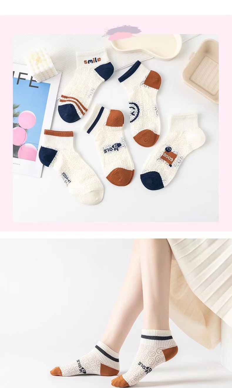 鏤空笑臉時尚短襪,鏤空笑臉設計,時尚可愛,百搭又減齡,彈力貼合不勒腳,柔軟親膚,日常好穿!