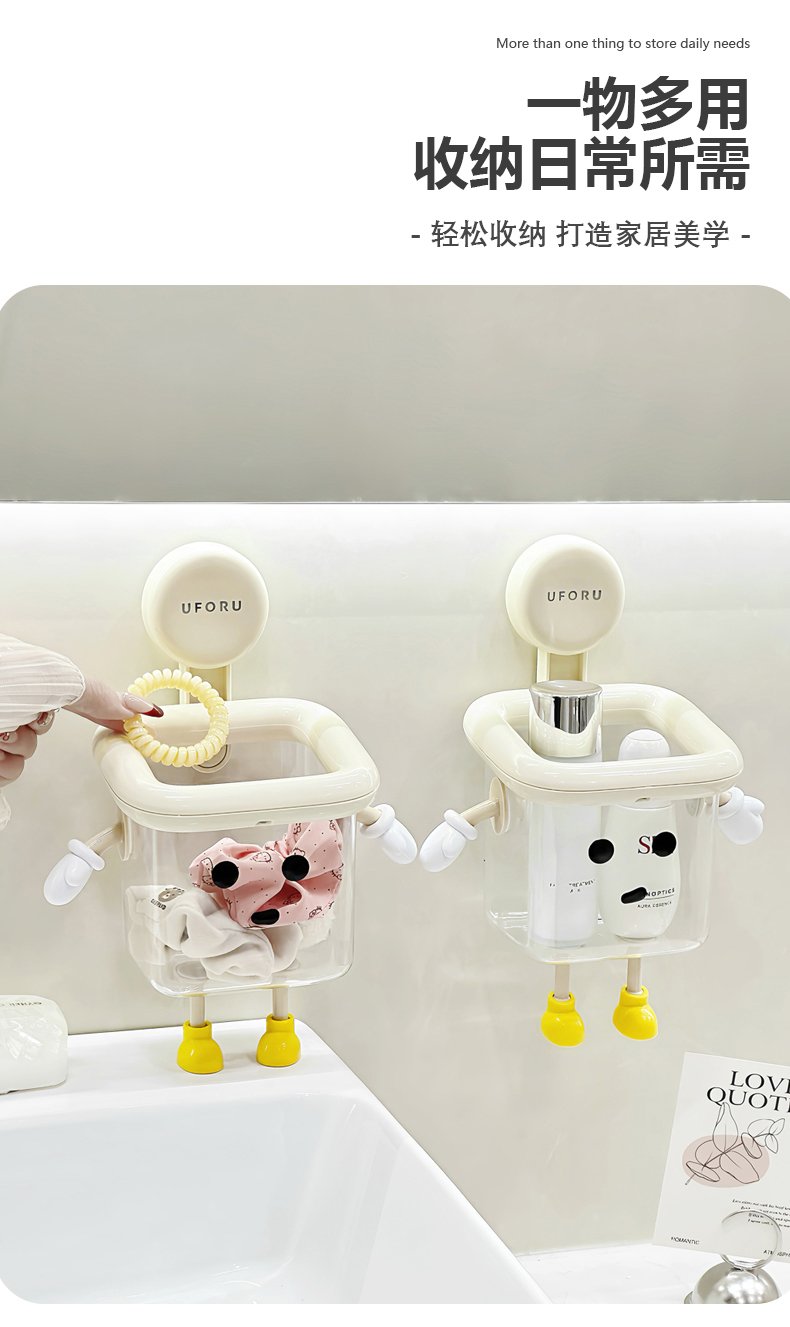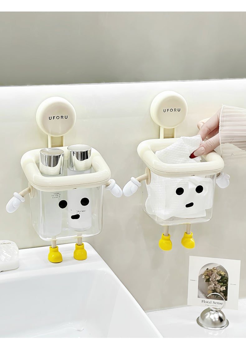 卡通吸盤收納盒,安裝快捷,承重力強,一物多用,收納日常所需,底部瀝水孔,乾燥不積水
