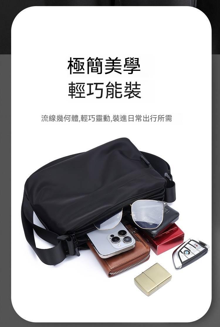 男士尼龍斜挎包,輕便尼龍,多隔層收納,潮流配色,妳的日常出行優選