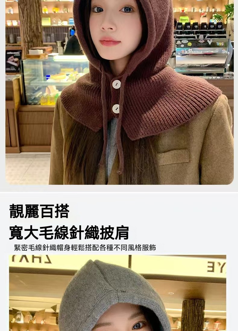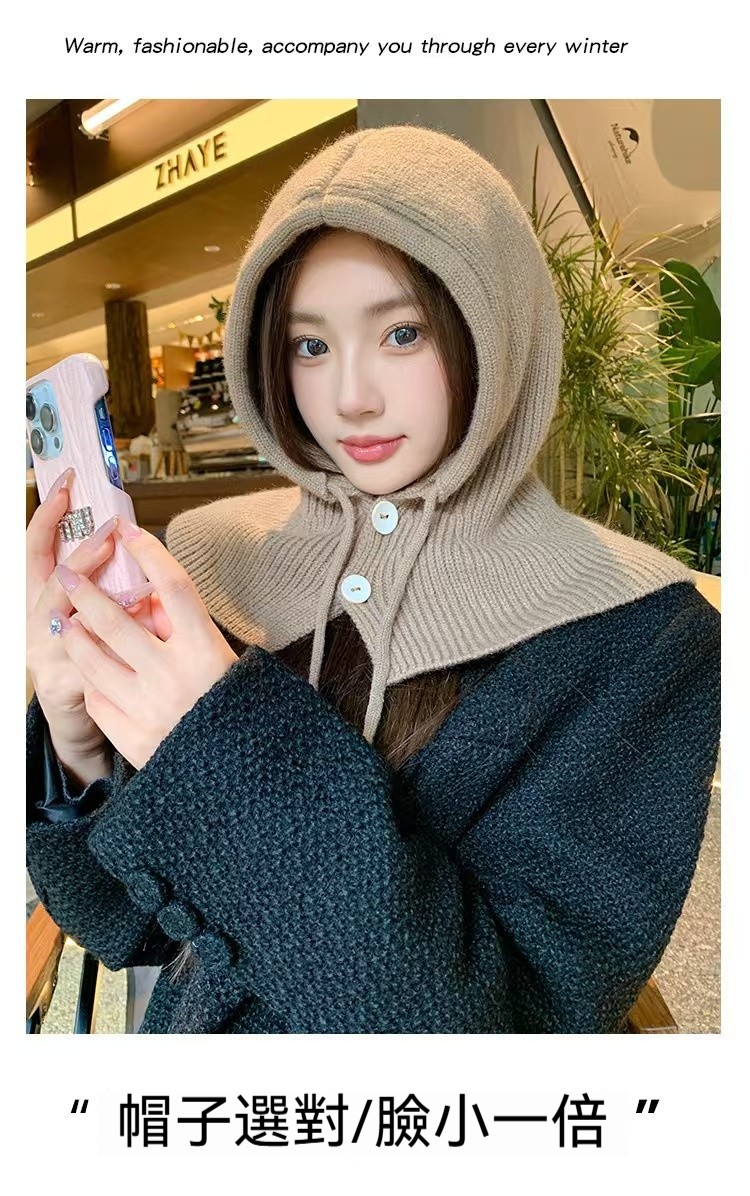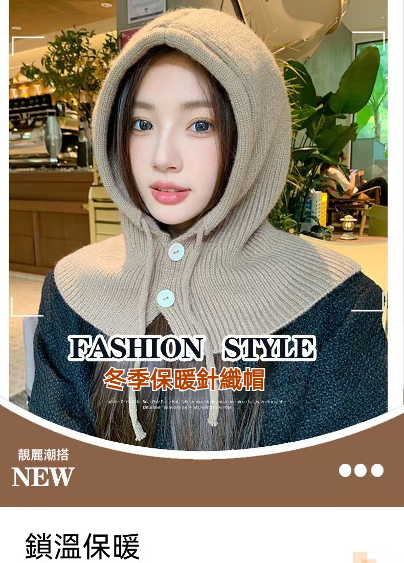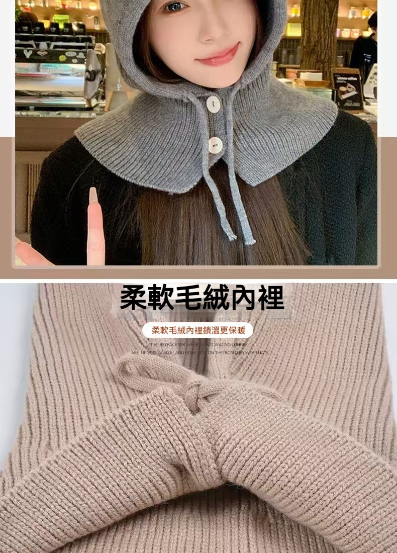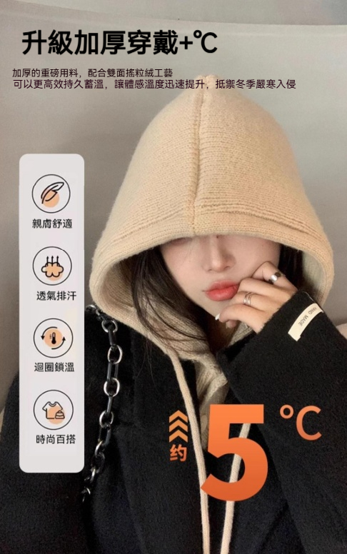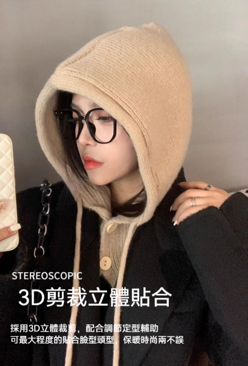 時髦精的保暖心機,立體針織帽型,修飾臉型不臃腫, 再也不怕圍巾滑落