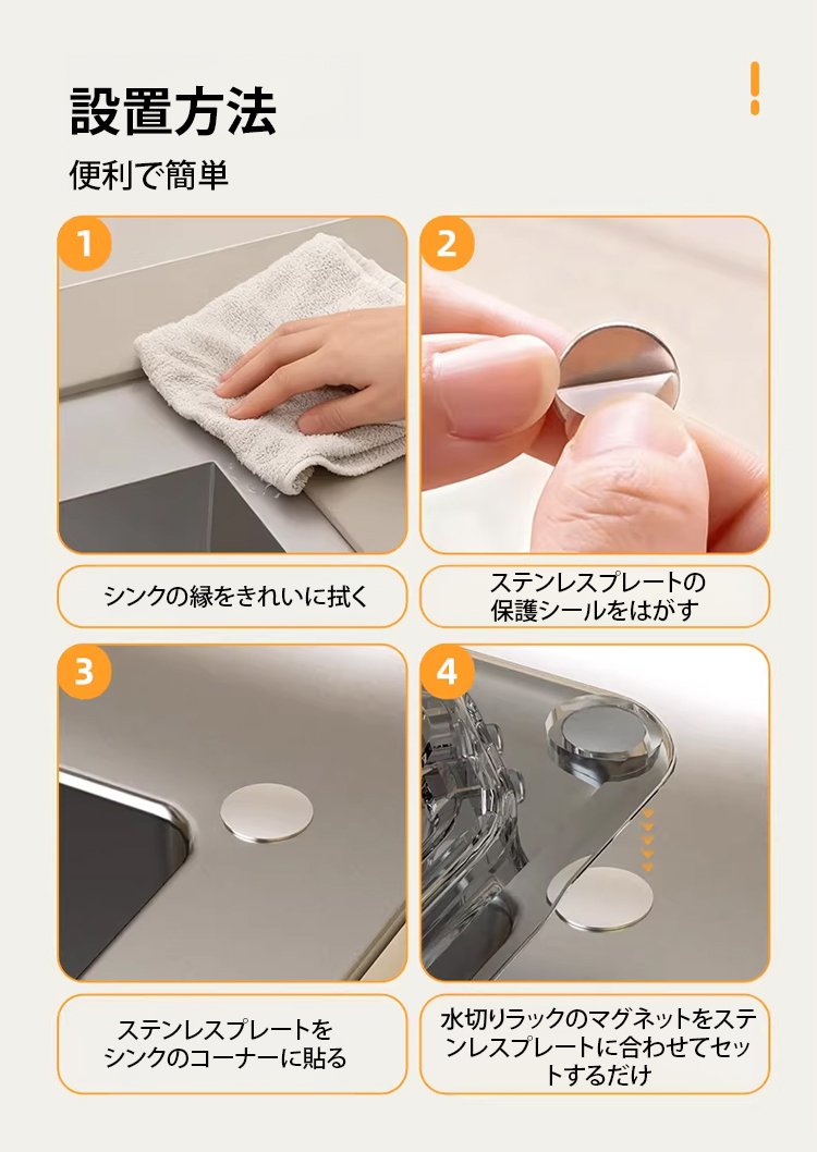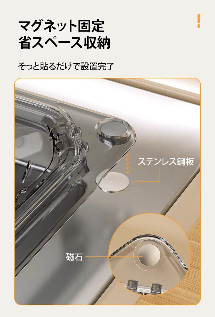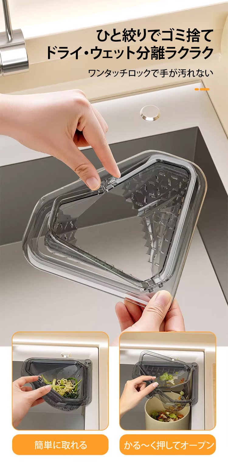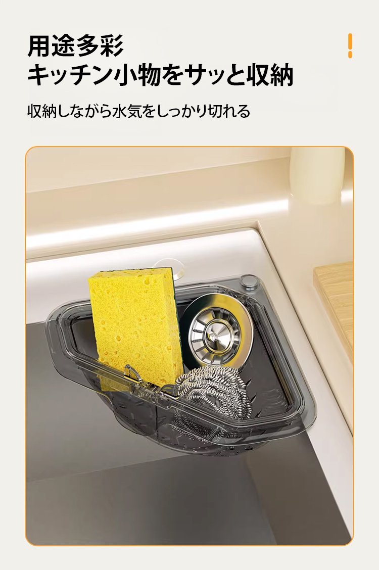 マグネット固定三角水切りラック水切りもお掃除もラクラク、スマートなキッチンライフをサポートします!
