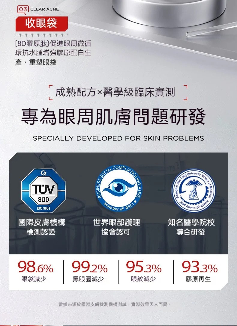 醫美級成分,滲透力是普通眼膜 3 倍,0 酒精,0 香精,敏肌孕婦都能用,紋路眼袋統統消