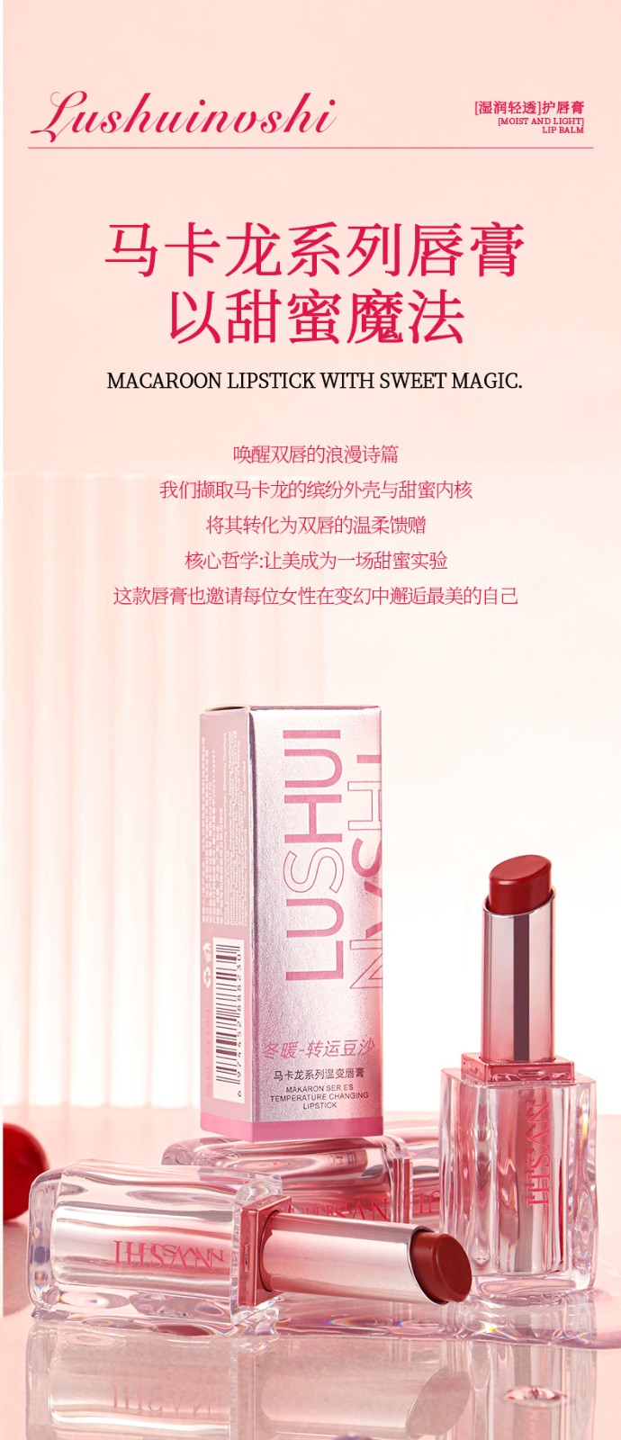 馬卡龍溫變唇膏,擦上即可自動調色,72小時長效保濕,輕鬆駕馭水潤小嘴