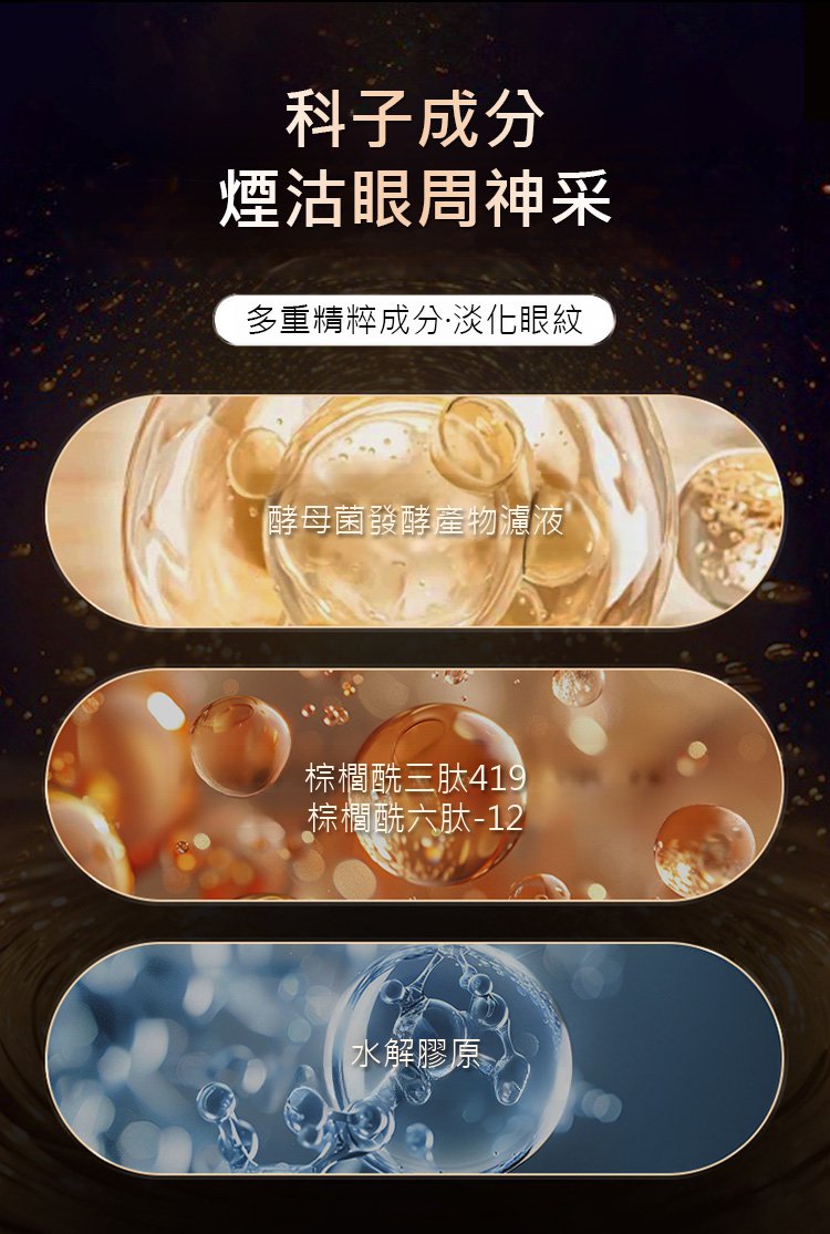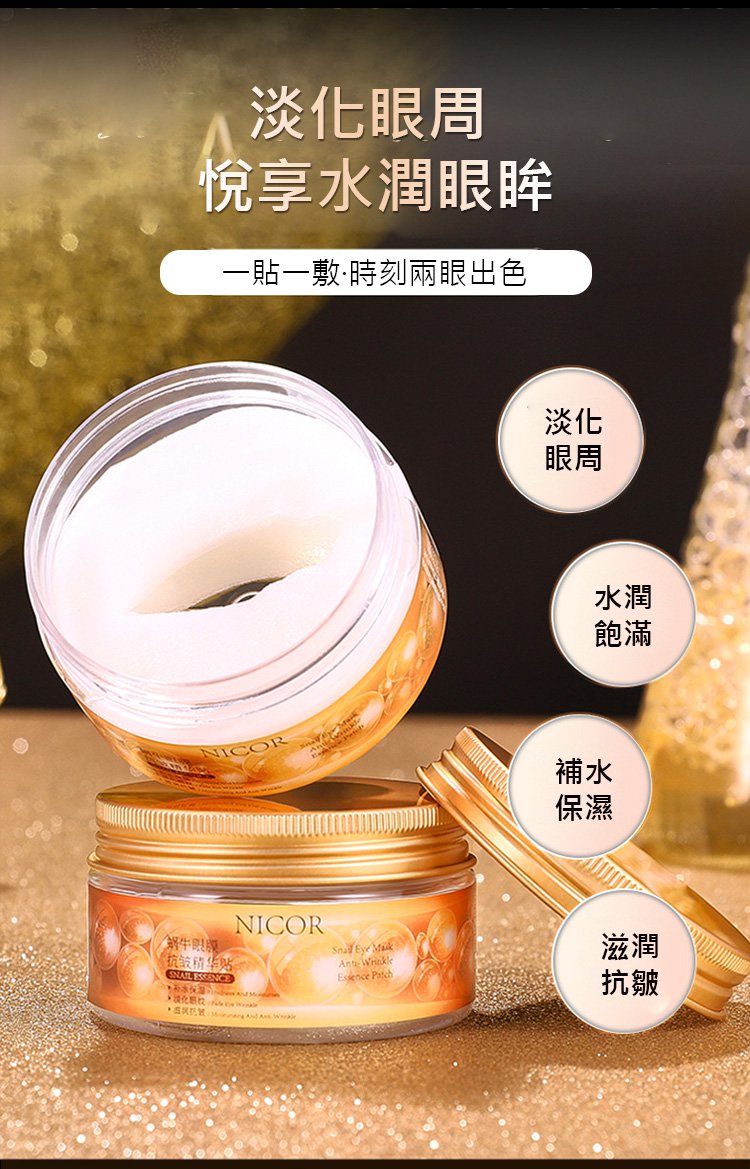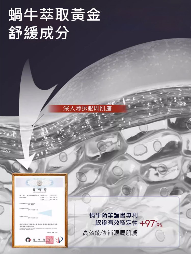 天然蝸牛分泌物原料,促進肌膚膠原蛋白活力,淡化黑眼圈,抗皺提拉緊緻皺紋,煥活眼部肌膚,充足眼睛水分