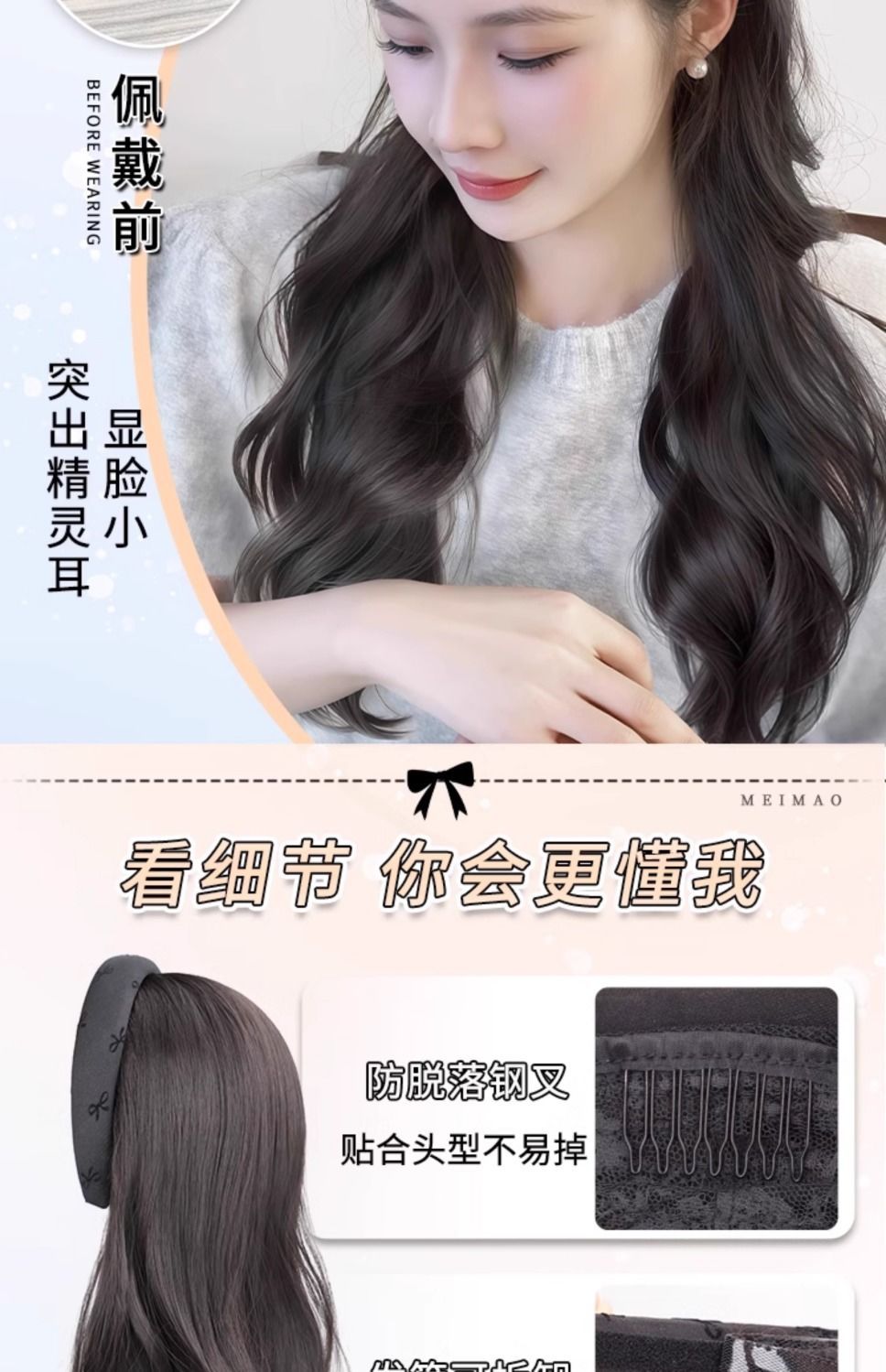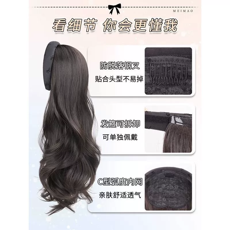 髮箍假髮一體成型,不夾不扯,隱形發網科技,撥發不尷尬,精選高溫絲,耐高溫造型,可燙卷拉直