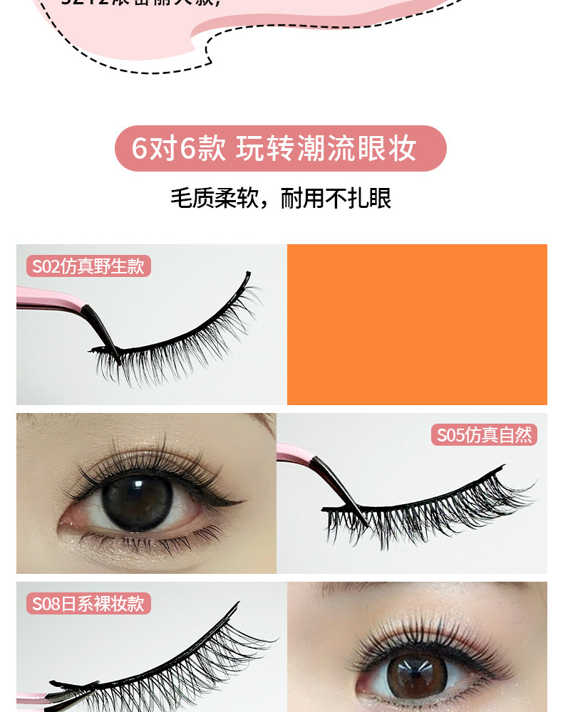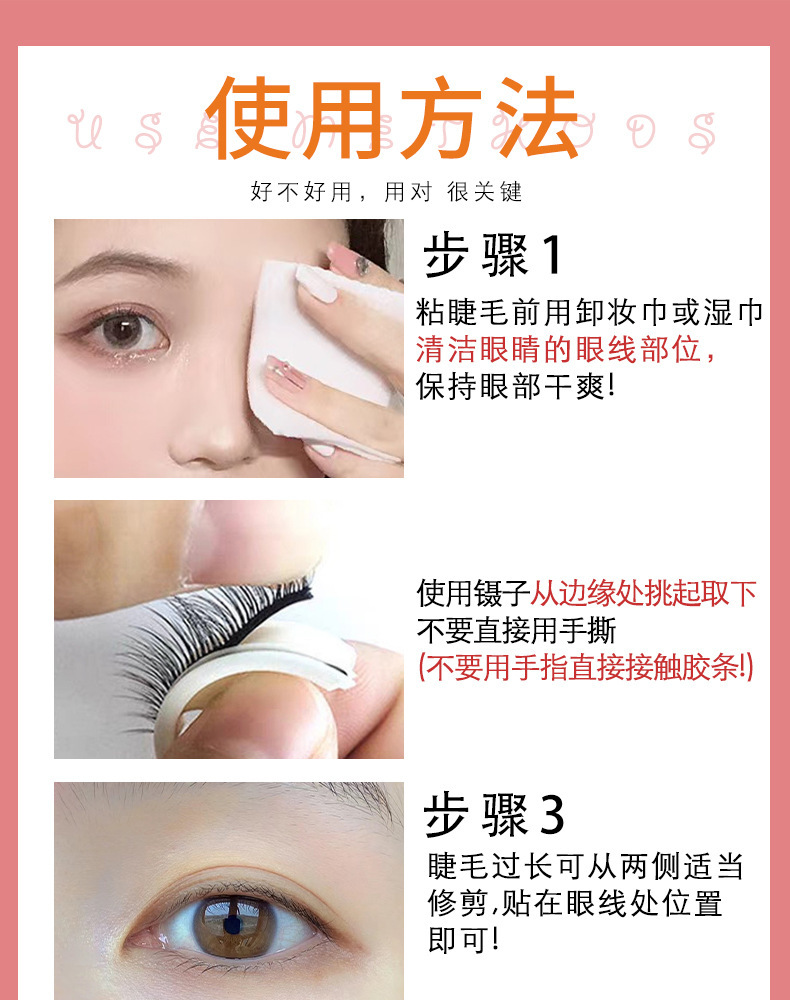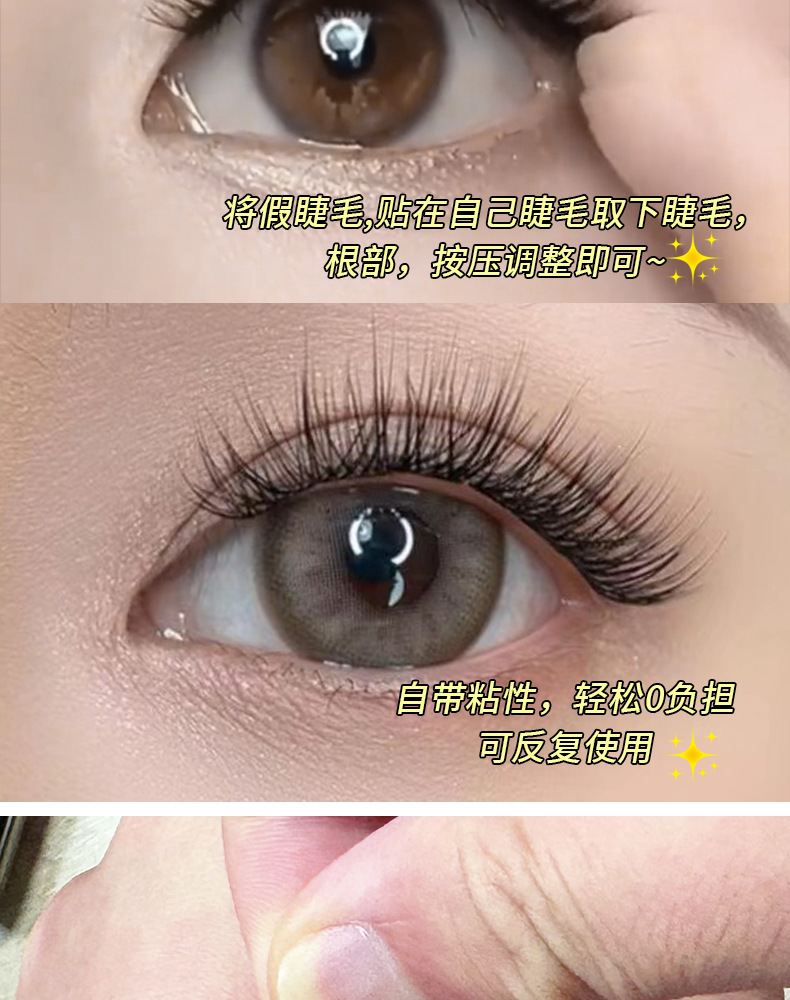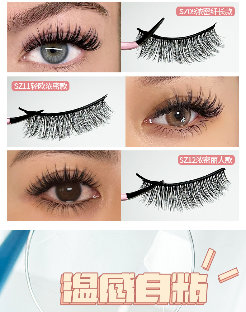 零膠水溫感黑科技,一貼即穩 宛如天生睫毛,舒適無感,彷若天生,佩戴無刺痛,無負重感,化妝新手,也能輕鬆戴出完美眼線