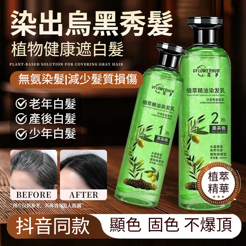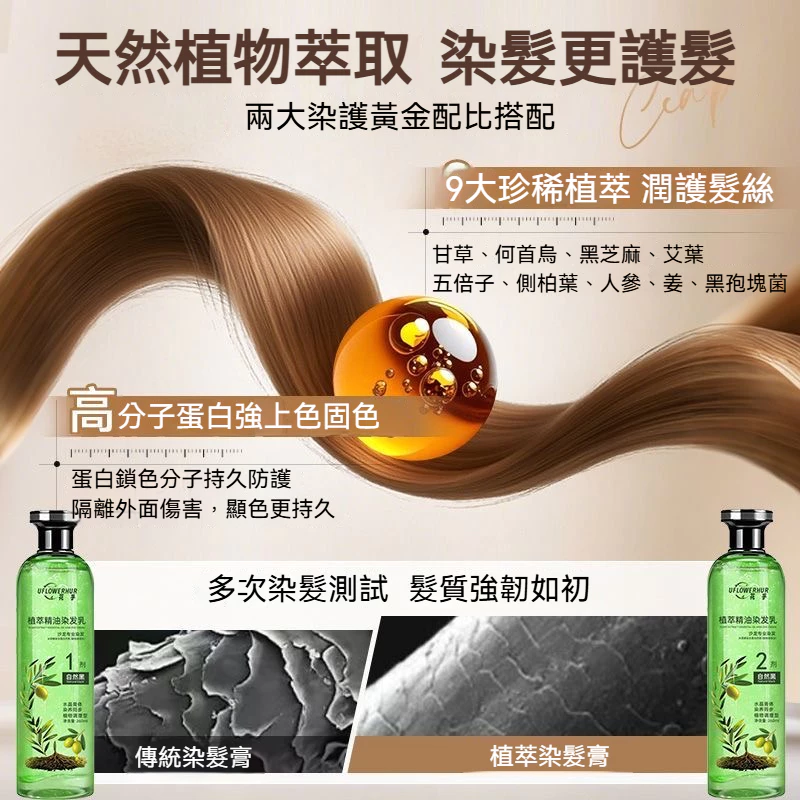 植物染髮,溫和不刺激,染護同步,純植物上色,固色持久,不傷髮絲,白髮全覆蓋!