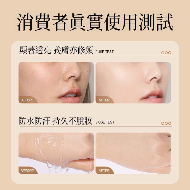水潤質地秒推開,一抹隱形提亮 ,不白面具、不卡紋,像開了內置補光燈一樣自然
