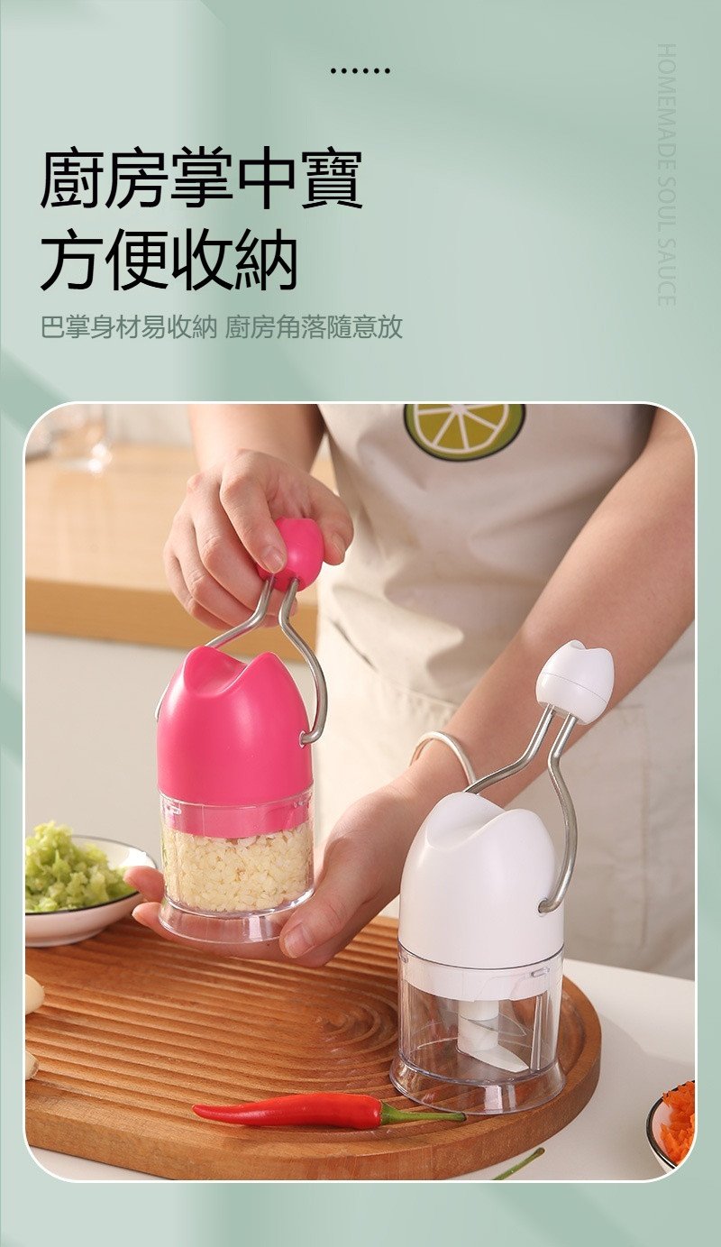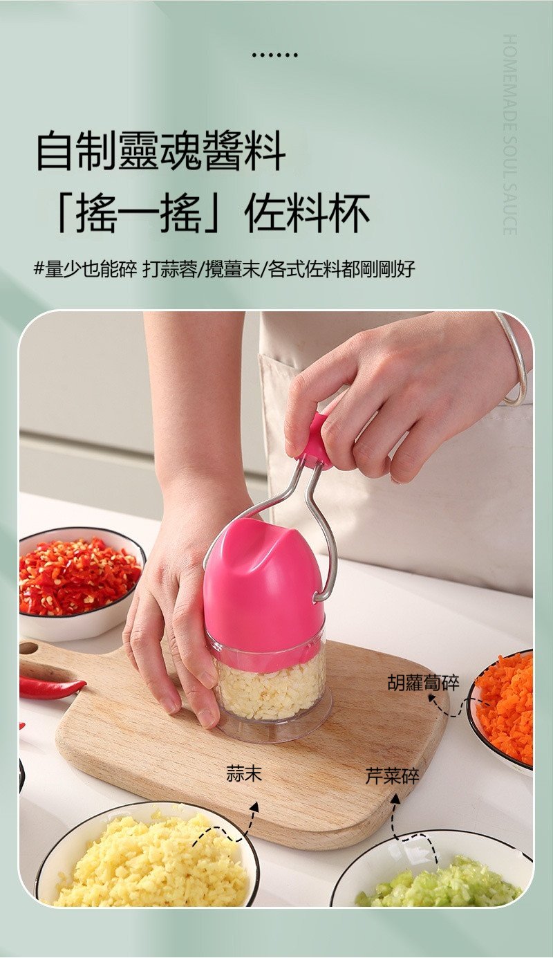 【手動搗蒜器】廚房必備。優選材質,鋒利刀頭,便捷手動。粗細可控,調料好物,小巧好收納